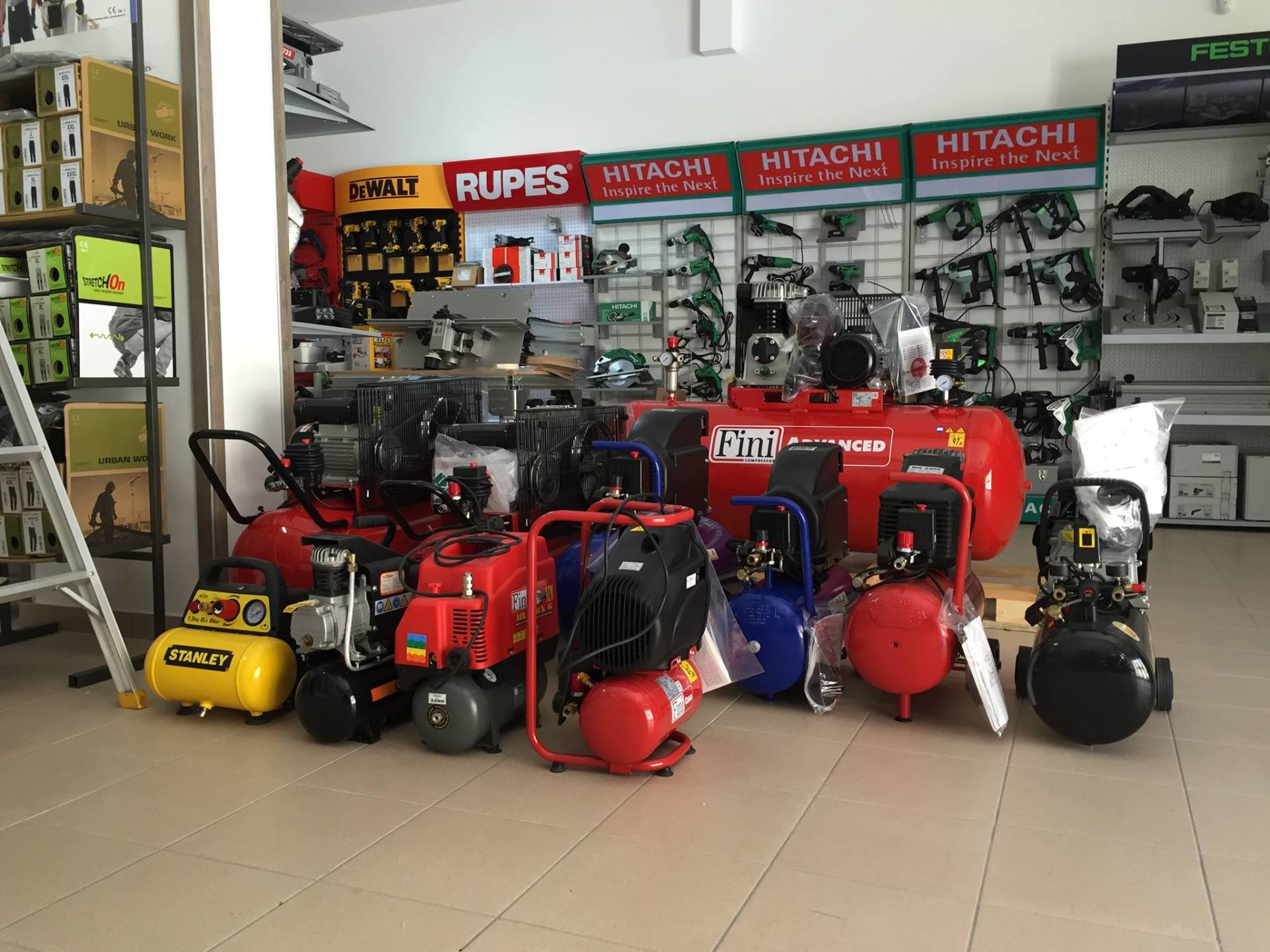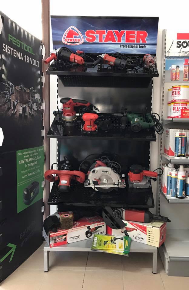 Ma non è tutto, perché gli scaffali sono pieni di utensili elettrici da appoggio, troncatrici e seghe da banco, aspiratori, idropulitrici, compressori, e materiale elettrico vario per coltivare la tua passione per il fai da te.